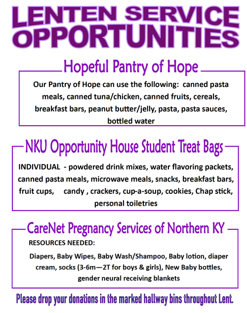 Ash Wednesday is March 5, our worship service will be at 7:00 PM.